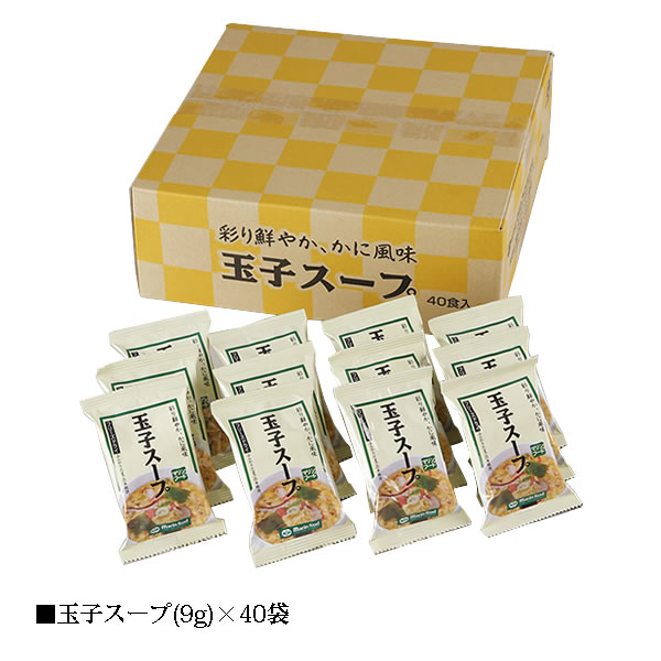 | 特徴 | フリーズドライタイプのスープです。ふんわり玉子、わかめ、椎茸、ねぎに加えて、カニ風味かまぼこが彩りを添え食欲そそるスープです。 |