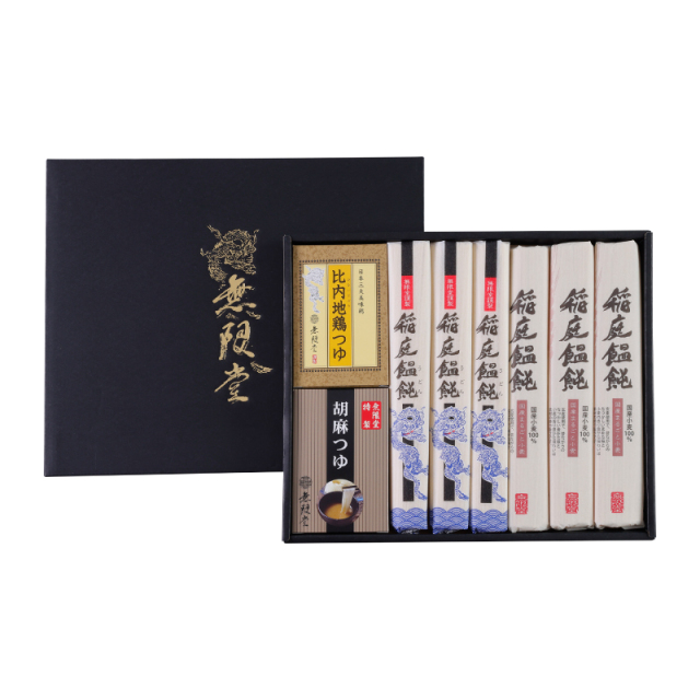 | 内容量 | ■国産小麦稲庭うどん:80g×3袋 ■稲庭うどん:80g×3袋 ■比内地鶏つゆ:30ml×3袋 ■ごまつゆ:30g×3袋 |